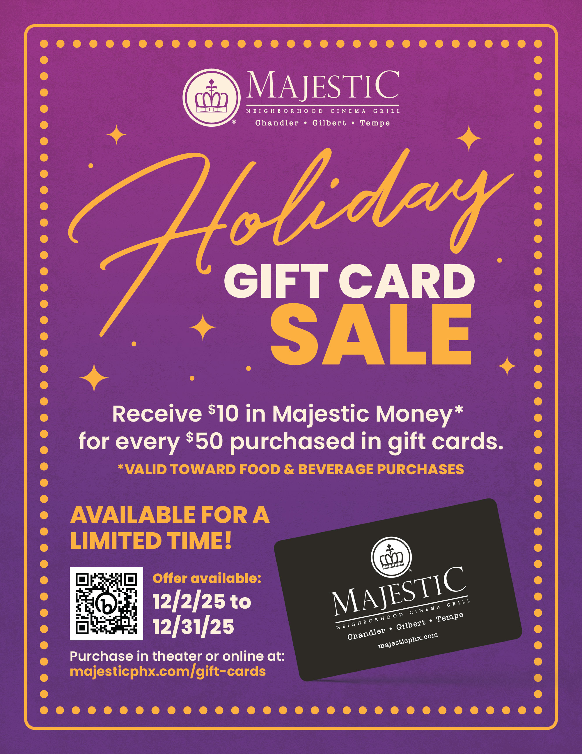 Looking for the perfect holiday gift for the movie buff in your life? Look no further than Majestic Neighborhood Cinema Grill!